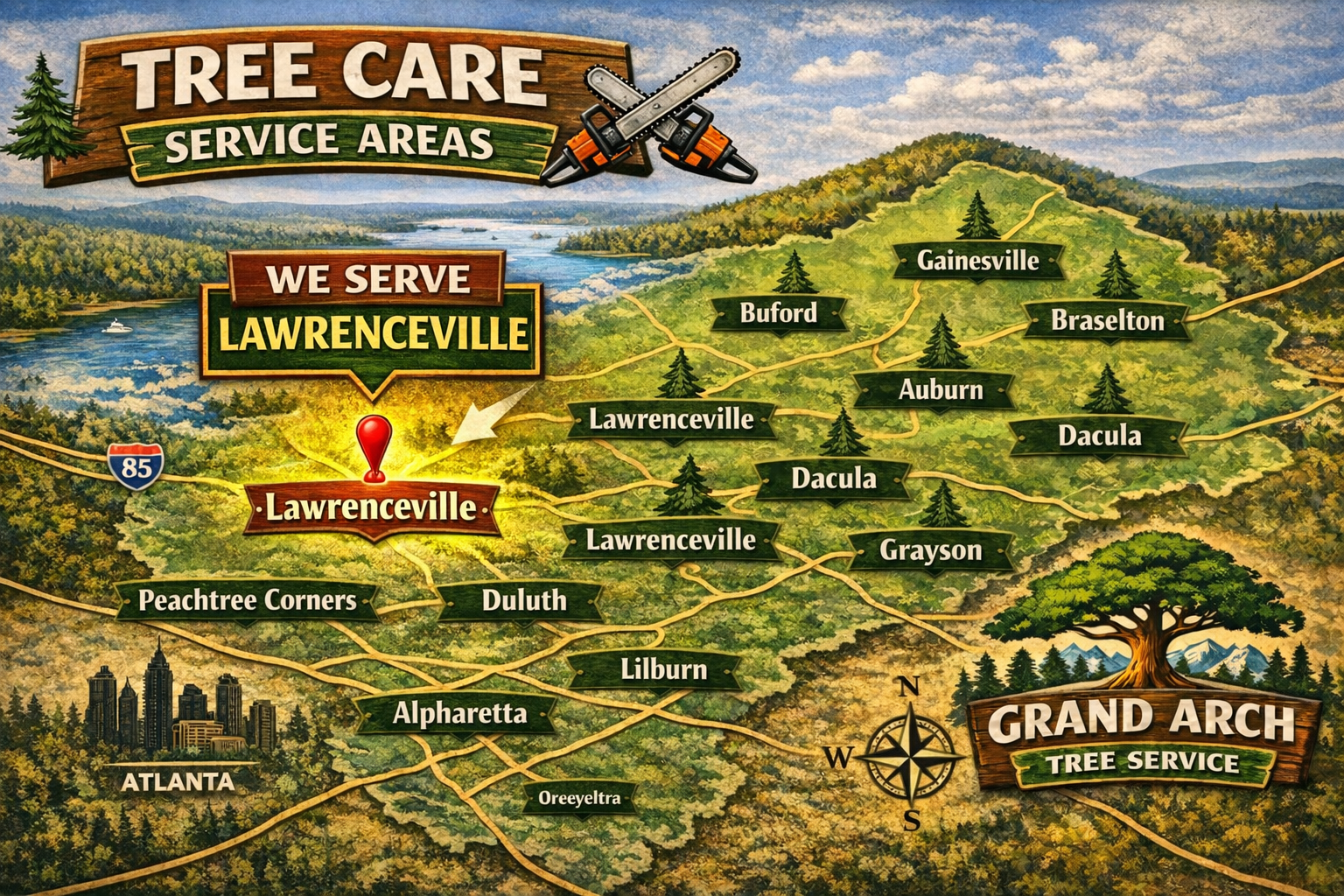 Grand Arch Tree Service proudly provides professional tree care services in Lawrenceville, GA, helping homeowners maintain safe, clean, and well-kept properties. With its established neighborhoods and dense tree coverage, Lawrenceville requires expert care to prevent hazards and keep landscapes looking their best.